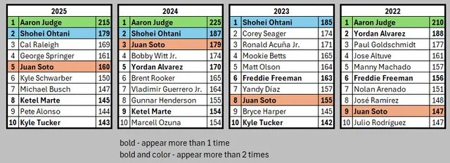 ソトの才能はエグい。ジャッジも怪我さえなきゃ全リスト入りだったろうけど、まあ試合に出続けるのも実力のうちだしな。