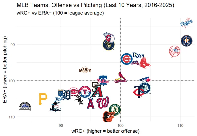 これ、ア・リーグ東地区の4チームがほぼ右上に固まってるよな。ブルージェイズは再建期があったからギリだけど。