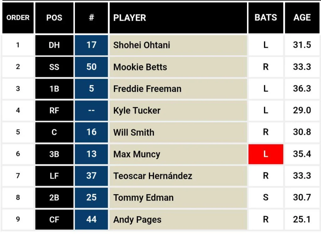 ドジャースの予想スタメン、実績がエグすぎて草:
