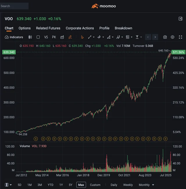 もっと長期で見れば、普通のVOOの方が勝つ。横ばいや下落局面が来たら一瞬で溶けるぞ。