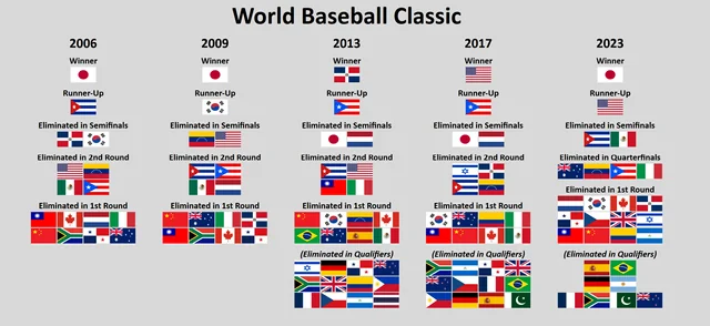 野球っていうスポーツの不確実性と、一発勝負のトーナメントってことを考えると、歴代優勝国が予想通りの3カ国(日・米・ド)に収まってるのは結構すごいな。