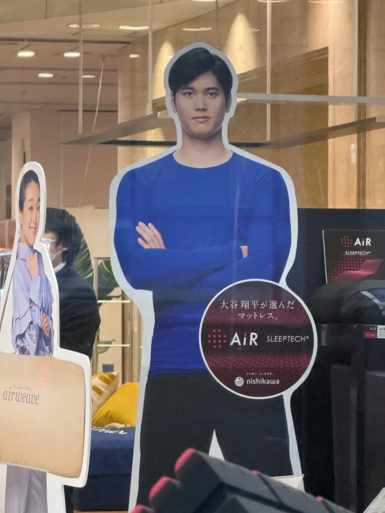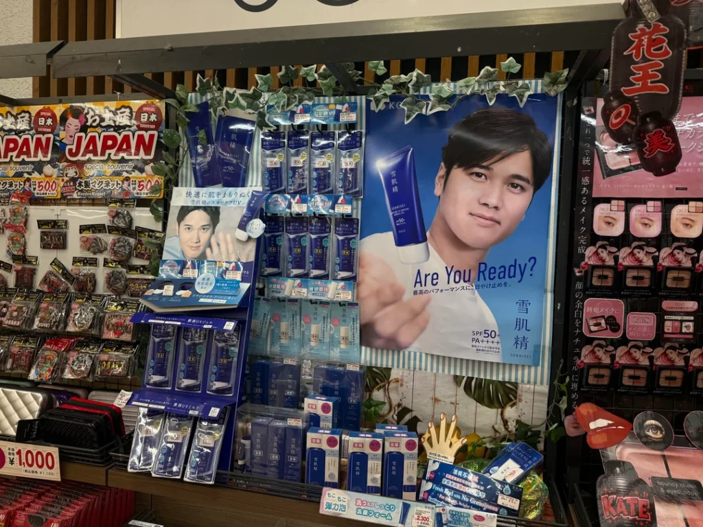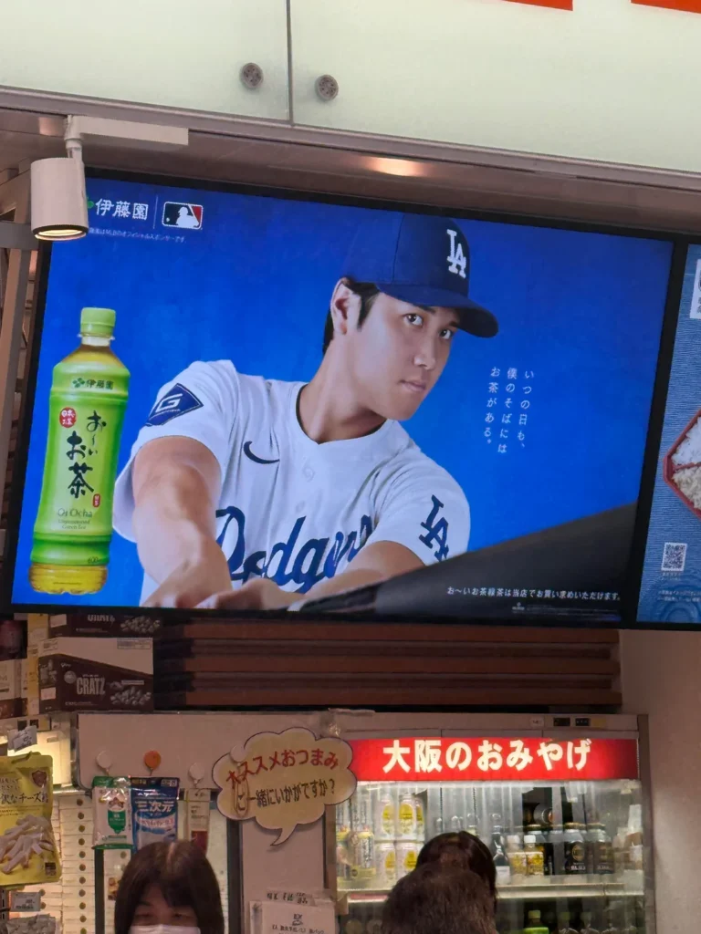 大谷の顔がない店なんて1つもないぞ。特に「お〜いお茶」の契約のおかげで自販機は全滅だ。服、高級品、化粧品、健康食品、マジでどこにでもいる。単なる史上最高の野球選手ってだけじゃなく、模範的な市民だしな。私生活が(西洋では普通でも)日本で敬遠されがちなダルビッシュとは大違いだ。