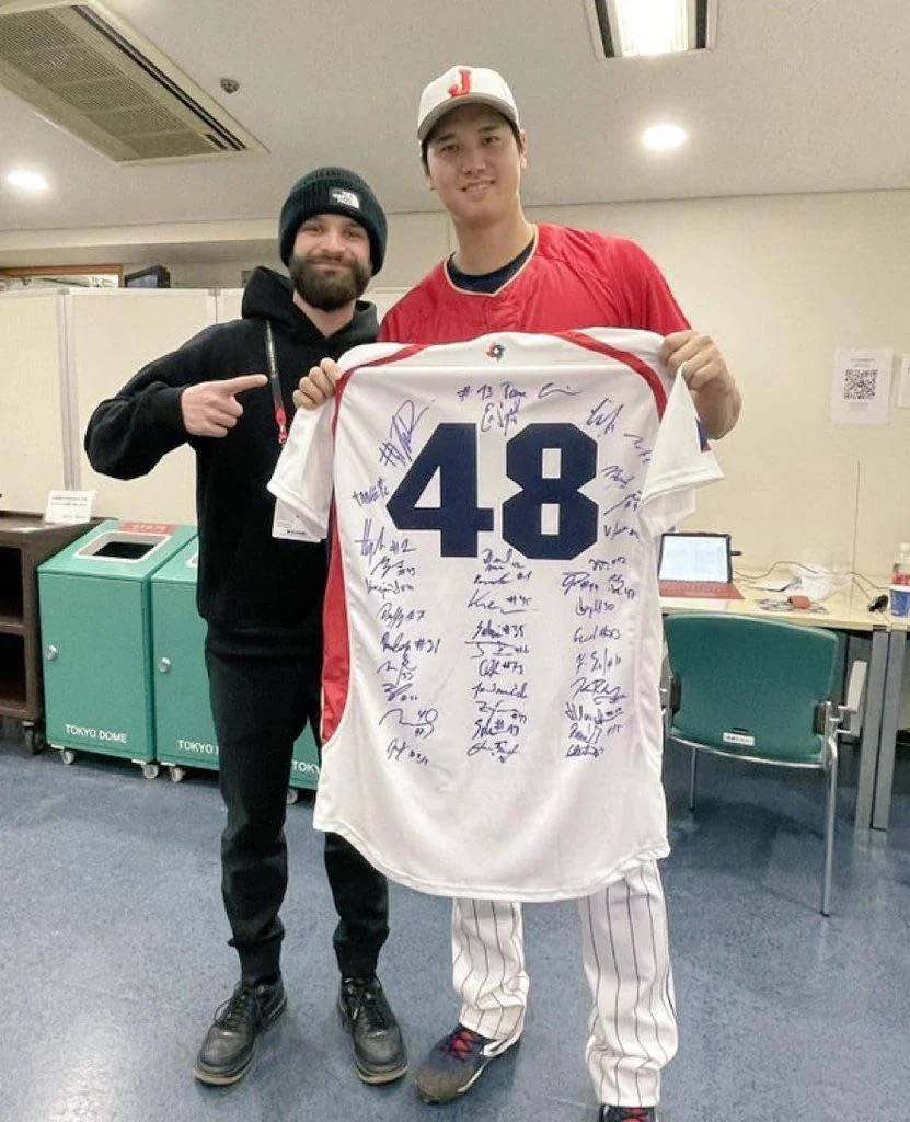 2023年WBCで、大谷翔平が依頼したチェコ代表のメンバーのサインを受け取った時の様子